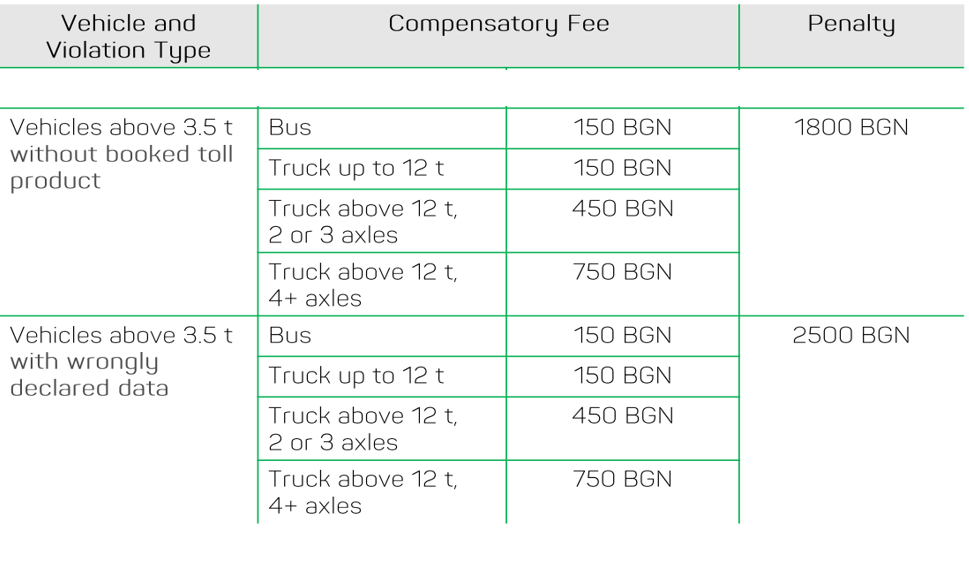 Il Sistema di Tolling Bulgaro è un sistema basato sulla geolocalizzazione (GNSS). Le strade a pagamento in Bulgaria sono rappresentate autostrade e „first class road“. Il calcolo della tariffa di pedaggio dipende da: